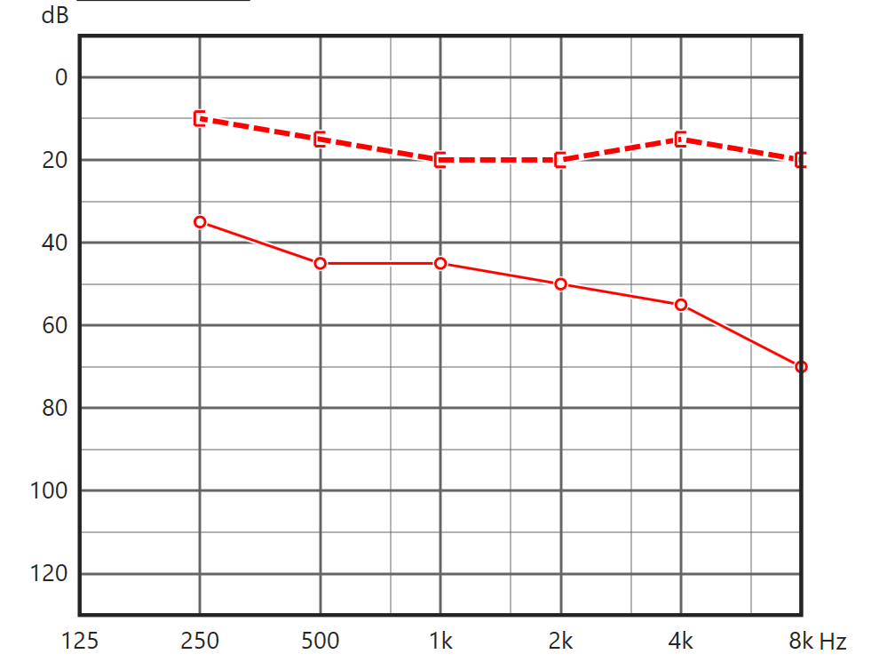 Kondukcinio sutrikimo audiogramos pvz.