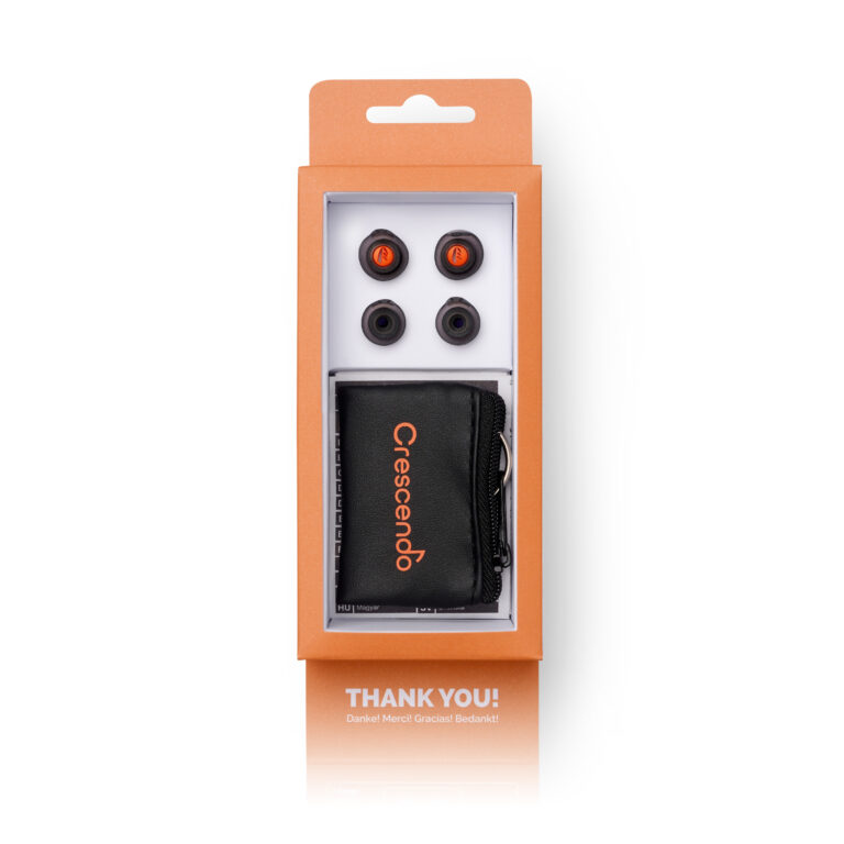 Sukurta specialiai mėgstantiems lankytis koncertuose ir muzikos entuziastams. Akustiniai filtrai slopina garsą visuose dažniuose, o garsas, sumažintas iki saugaus klausymo lygio, išlieka malonus. Su „Crescendo Music 20“ galite saugiai klausytis 105 dB muzikos nepertraukiamai net iki 8 valandų.