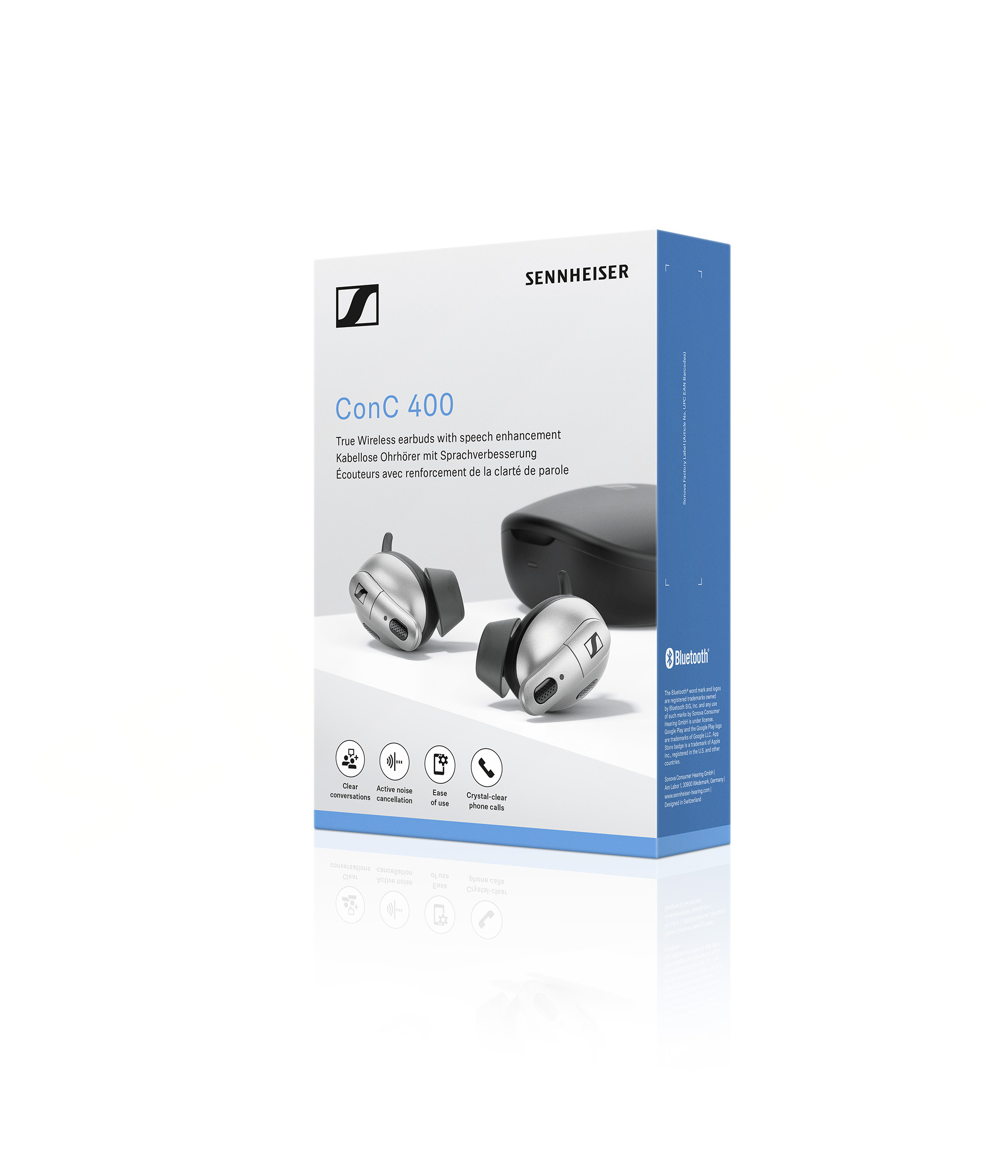 Jūs nesiskundžiate klausa, tačiau kartais nesuprantate ką Jums sako pašnekovas?  Vykstant susirinkimui, paskaitai, ypač didelėse auditorijose, sunku girdėti lektorių? O gal triukšmingame prekybos centre, mugėje, turguje kai kurie kalbos garsai „susilieja”?   Turime Jums sprendimą – „Sennheiser ConC 400“ kalbą išryškinančios ausinės. Praktiškai kiekvienas turi pažįstamų, kuriems sunku sekti pokalbius triukšmingoje aplinkoje ar aiškiai girdėti televizijos programas. Daugelis supranta, kad jiems reikia tobulinti klausą, tačiau jiems sunku atrasti technologiją, kurią naudoti būtų lengva, kaip skaitymo akinius. „Sennheiser“ garso ekspertai supažindina su sprendimu – „ConC 400“, skirtu atpažinti ir išryškinti kalbą, sudėtingose ar triukšmingose situacijose. „ConC 400“ sukurti taip, kad slopintų pašalinius garsus ir išryškintų kalbą esant dideliam foniniam triukšmui, pvz.: restorane ar viešajame transporte. Specialūs daugiakrypčiai mikrofonai, ant kiekvienos ausinės, analizuoja aplinkos triukšmo lygį, tuo pačiu automatiškai atpažįsta ir išryškina kalbos supratimą. Šios ausinės puikiai tinka nuo lengvo iki vidutinio klausos sutrikimo. Joms nereikia gydytojo siuntimo – tai pagalbinė klausymosi priemonė, kurią naudosite savo nuožiūra, pagal poreikį.