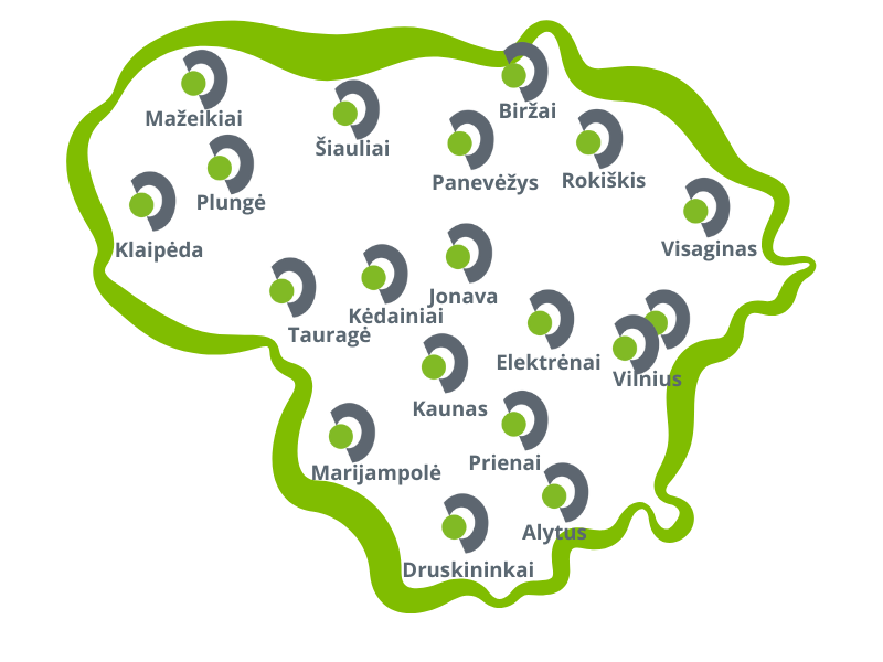 *Marijampolėje, Jonavoje, Visagine, Prienuose, Druskininkuose, Alytuje, Rokiškyje, Biržuose, Mažeikiuose, Kėdainiuose, Elektrėnuose, Plungėje ir Tauragėje klausos reabilitacijos paslaugos teikiamos periodiškai pagal išankstinę registraciją telefonu.
